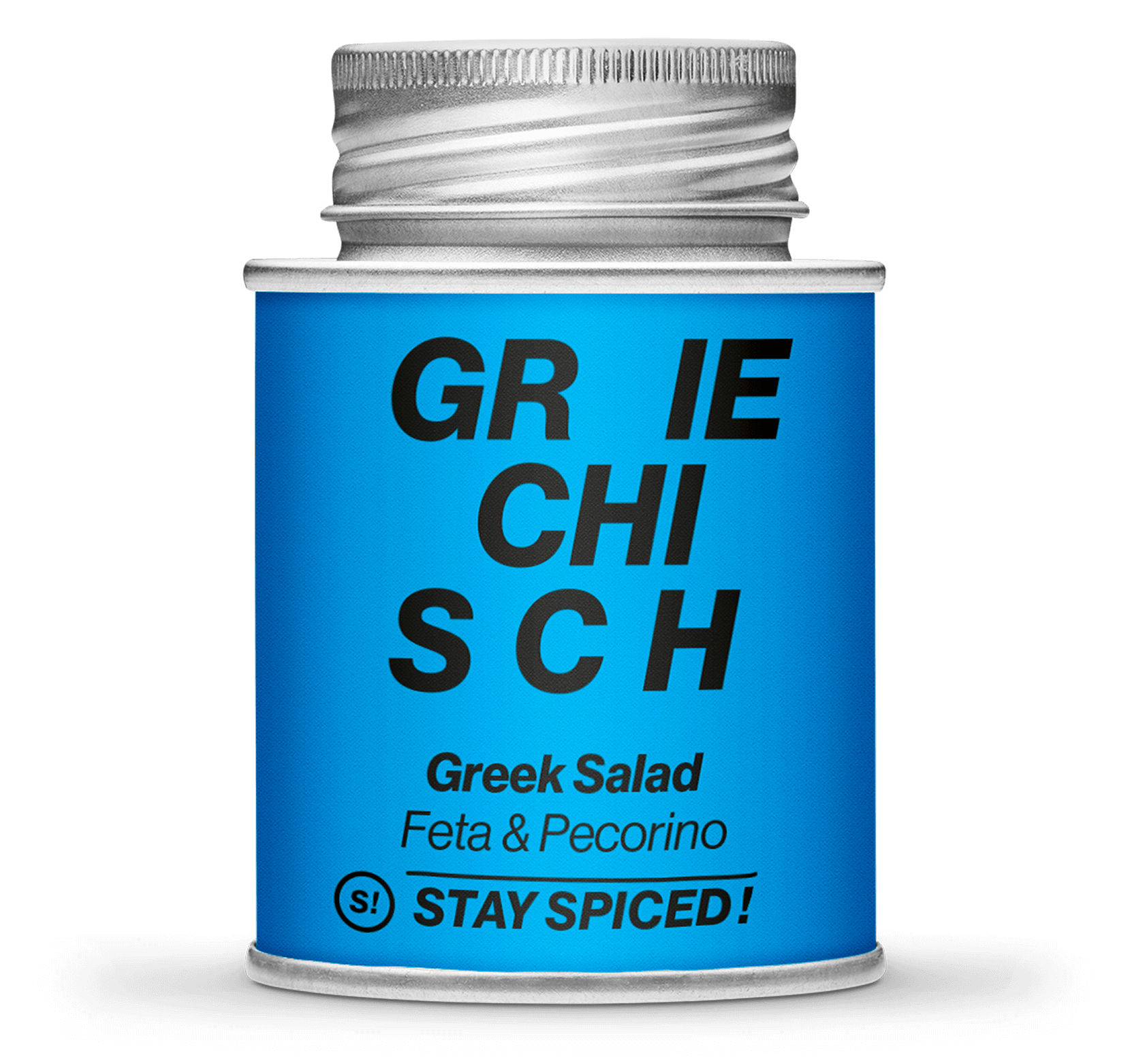 In „Stay Spiced Greek Salad – Feta & Pecorino, 170ml Schraubdose“ findet sich eine harmonische Kombination aus Salz, getrocknetem Feta und Pecorino, Oregano, Thymian, Basilikum, getrockneten Tomatenstücken, schwarzen Olivenstückchen und weiteren Zutaten, die sich perfekt ergänzen, um dem Gaumen einen Trip durch die Ägäis zu bereiten.